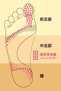 足裏には固有受容器という、圧感覚、荷重感覚、バランス感覚などを司るセンサーが数多く配置されています。
