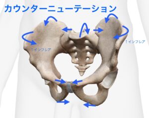 この関節が緩んでいると仙骨が後傾し、寛骨が前傾しながらインフレアしていき、これをカウンターニューテーションと云います。