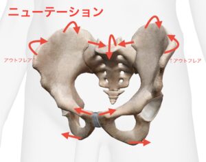 仙腸関節の締まりは、仙腸関節の緩みとは逆で、仙骨が前傾し、寛骨が後傾しながらアウトフレアすることで起こり、これをニューテーションと云います。